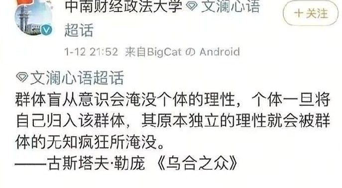 该高校公开援用社会学家勒庞“乌合之众”表面回答粉丝活动。